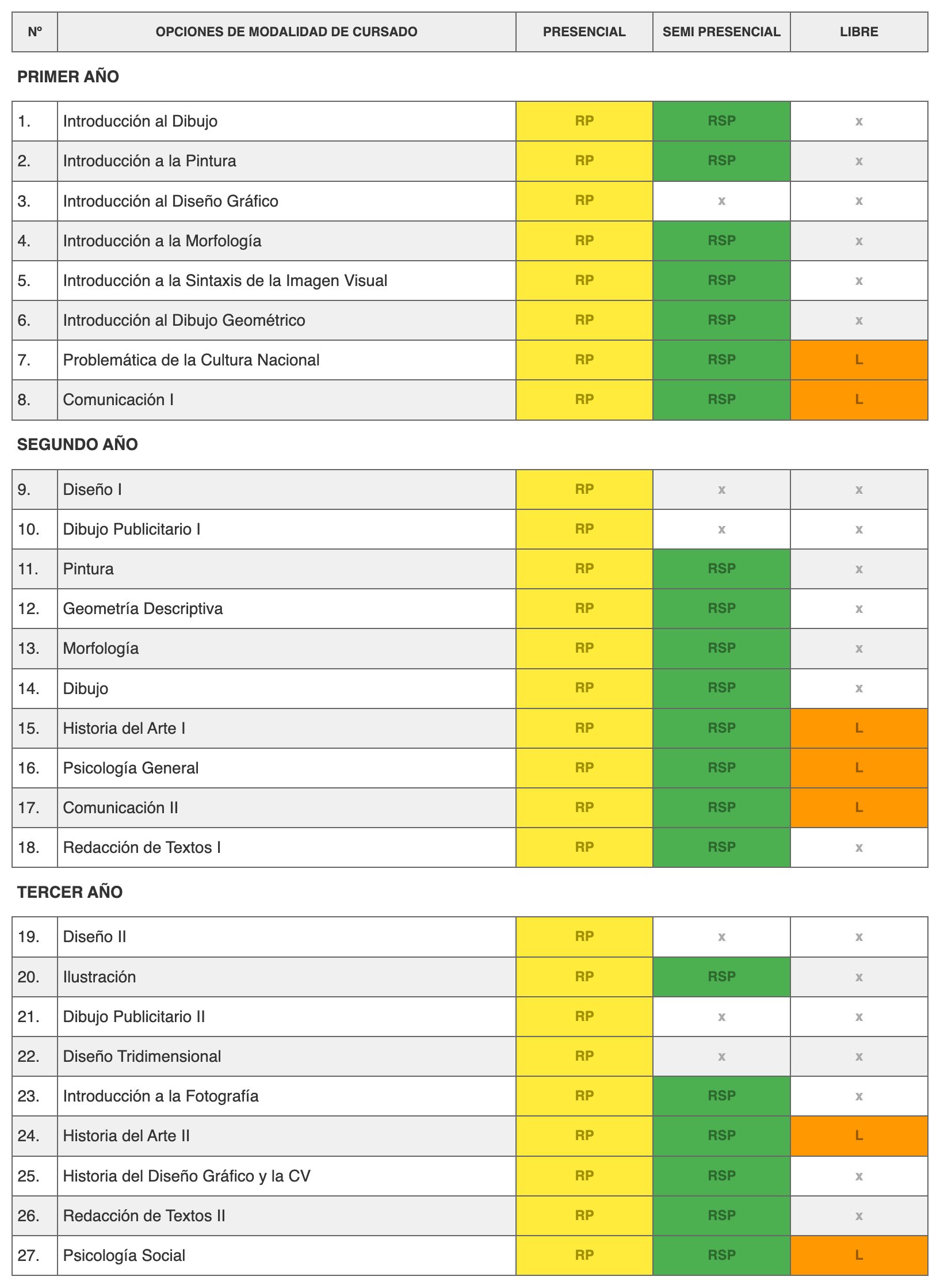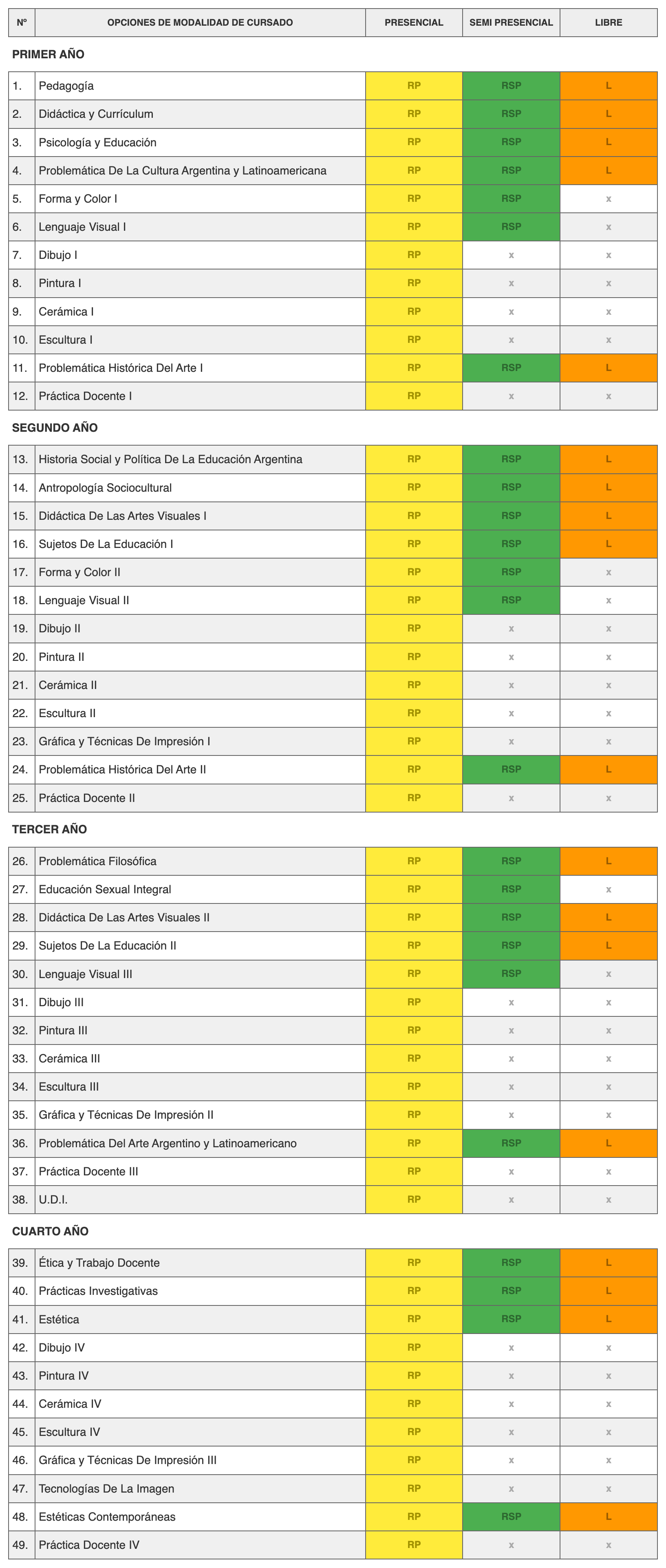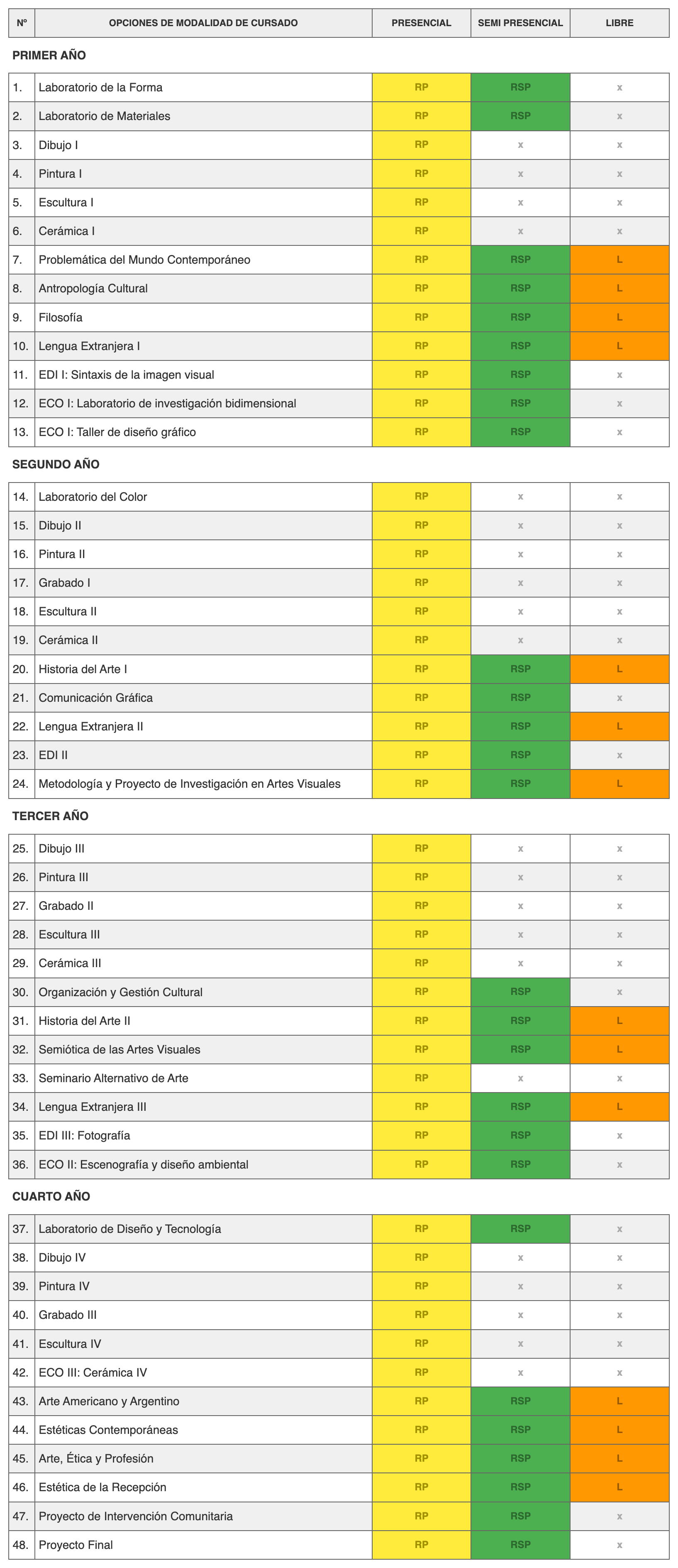 Modalidades de cursado Técnico en Diseño Gráfico y CV Profesorado de Artes Visuales con Orientación en Producción Tecnicatura en Artes Visuales
